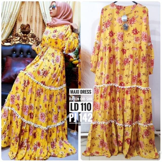 Jual Maxidress Gamis Rayon Ori Motif Bunga Warna Kuning Indonesia Shopee Indonesia